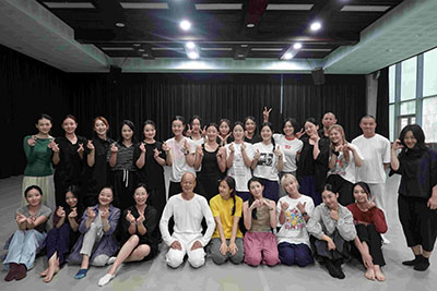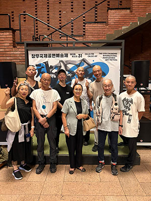 8月23日、朝一番の新幹線で羽田空港に行きメンバーと合流。ソウル到着後の空港からの移動やホテルは山海塾で手配しました。ソウルも東京と同じ様に海外からの旅行客が多く、タクシーやホテルの予約が難しいようです。スノーフラワー・ゲストハウスという24時間台所で無料の食事が出来る格安ホテルで、静岡、名古屋から来たメンバーと合流し、午後7時からフェスティバルのオープニングイベント会場に行きました。フェスティバルでは他のグループの出し物が見ることが出来るので勉強になります。キム・メジャの娘や孫が迎えてくれましたが、キム・メジャ本人は自分たちのスタジオ公演のために来ていませんでした。本人も出演していたそうです。