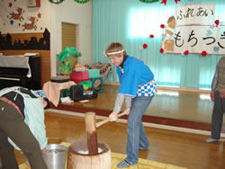 私は黒部市の国際交流員として、保育所と幼稚園で簡単な英会話やアメリカの遊びを教えています。小学校で…