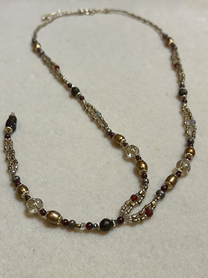「実り」や「情熱」を象徴するガーネットと、「安らぎ」や「守護」を意味するスモーキークオーツ。カンボジアで採れる種類の天然石と真珠を使って、ネックレスを作りましょう。